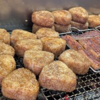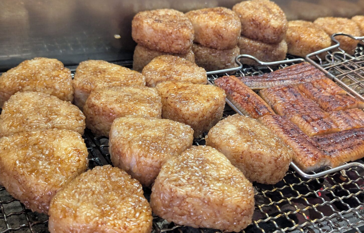 Cooking Method | Coated in a secret eel sauce and carefully grilled over Binchōtan charcoal. | The richness of the sauce and the unique aroma of Binchōtan charcoal enhance the flavor of the rice ball. |
